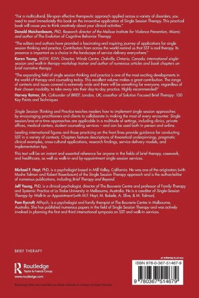 "The expanding field of single-session thinking and practice is one of the most exciting developments in the world of therapy and counseling today. This excellent volume makes a great contribution. The range of contexts and issues covered is extremely wide and there will be something for everyone, regardless of their chosen modality, to take away into their day-to-day practice. Highly recommended!"
