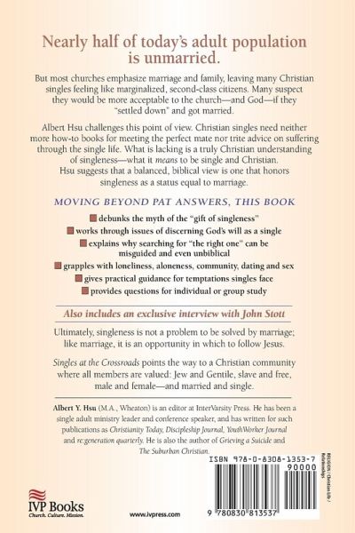 Albert Hsu has written a book that provides a truly Christian understanding of singleness--what it means to be single and Christian. He suggests that a balanced, biblical view is one that honors singleness as a status equal to marriage.