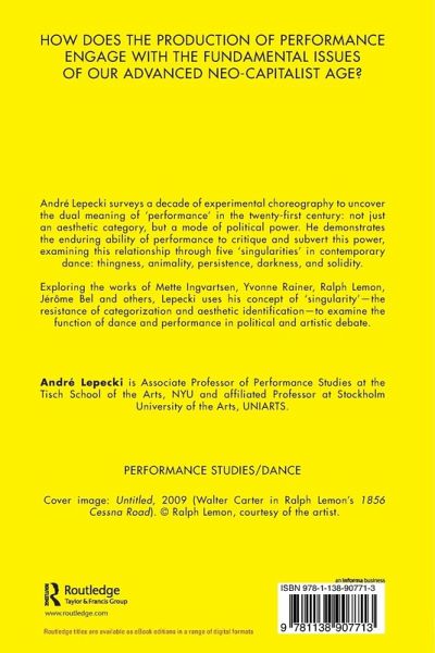 How does the production of performance engage with the fundamental issues of our advanced neo-capitalist age? Andre Lepecki surveys a decade of visual art and experimental choreography to uncover the dual meaning of â performanceâ in the twenty first century â not just as an aesthetic category but also as a mode of political power.