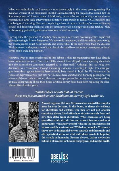What was unthinkable until recently is now increasingly in the news: geoengineering. For instance, we hear about billionaires like Bill Gates advocating for projects that would dim the Sun in response to 'climate change.' Additionally, universities are conducting more and more research into large-scale interventions in nature, purportedly to reduce CO2 emissions and combat global warming. Ideas such as placing mirrors in space, 'fertilizing' oceans, whitening clouds, and dispersing chemicals into the stratosphere are no longer seen as far-fetched-they are becoming potential global-scale solutions to 'save' humanity. Leaving aside the question of whether these measures are truly necessary, critics argue that geoengineering is far too dangerous. We have only one planet, and if something goes wrong, the consequences could be immediate and irreversible. Is the cure worse than the disease? The long-term, widespread use of toxic chemicals could have enormous consequences for all forms of life, including humans. However, what is often overlooked in this debate is that geoengineering may have already been underway for years. Since the 1990s, aircraft have allegedly been spraying chemicals into the atmosphere-commonly referred to as 'chemtrails.' Although this has long been dismissed as a 'conspiracy theory, ' increasing evidence is coming to light. For example, questions about geoengineering have recently been raised in both the US Senate and the House of Representatives, and several US states have enacted laws banning geoengineering (chemtrails) over their territories. More and more people are becoming aware that something unusual is happening above their heads-artificial silvery skies have been replacing the once-vibrant blue skies for years. Aerospace engineer Dr Coen Vermeeren has studied this complex issue for over 20 years. In this book, he shares the evidence for chemtrails and explains why they are not just another conspiracy theory. He clarifies how aircraft contrails form and how they differ from chemtrails. What chemicals are being spread by certain aircraft, how and where this occurs, and most importantly-why and by whom? What are the consequences for humans and the environment? With clear examples, Vermeeren shows how to distinguish between contrails and chemtrails, and offers practical advice on what individuals can do to help stop this assault on humanity. Because the real, darker motivation behind it all reaches far beyond our physical and mental health. 'Sinister Skies' reveals that, at its core, this is an attack on the very light within us.
