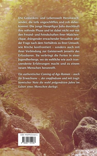 Die Gedanken- und Lebenswelt Heranwachsender, die teils ungeschliffen und roh daherkommt: Die junge Hauptfigur Julia durchläuft ihre reifende Phase und ist dabei nicht nur mit den Freund- und Feindschaften ihrer Mädchenclique, drängender erwachender Sexualität oder der Frage nach dem Verhältnis zu ihrer Umwelt, wie Kirche konfrontiert - sondern auch mit ihrer Verbindung zur Geisterwelt jenseits des Erfassbaren. Sie verbringt die Ferien in einer Jugendherberge, wo sie weltliche wie auch transzendente Erfahrungen macht und zu einem neuen Menschen heranreift.Ein authentischer Coming-of-Age-Roman - auch für Erwachsene -, der empfindsam und mit tragikomischer Note die wohl prägendsten Jahre im Leben eines Menschen darlegt.