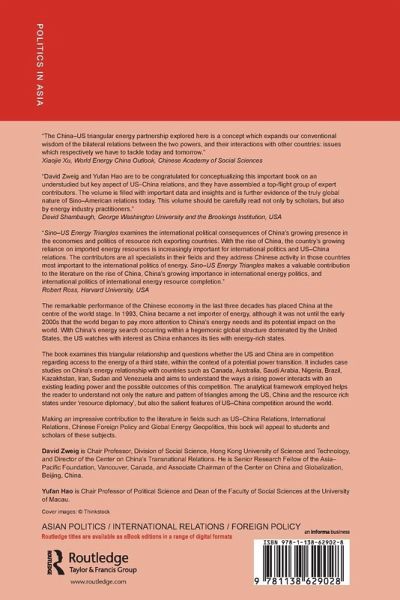 As China has become a net importer of energy, it has increasingly come up against the US in competition for the energy of a third state. Examining this triangular relationship, this book includes case studies on China's energy relationship with countries including Canada, Australia, Saudi Arabia, Anola, Nigeria, Brazil, Kazakhstan, Iran, Sudan and Venezuela, and makes a huge contribution to the literature in fields such as US-China relations, international relations, Chinese foreign policy and global energy geopolitics.