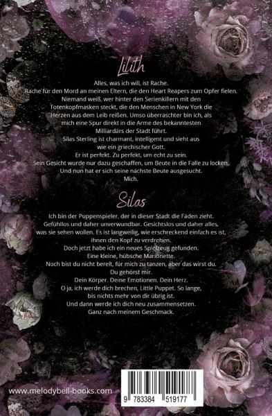 Wurde dieses perfekte Gesicht geschaffen, um Beute in die Falle zu locken?Sollte Silas Sterling wirklich ein eiskalter Serienkiller sein, ist seine Tarnung mehr als perfekt. Er wäre die Art von Raubtier, die ihre Beute gar nicht erst zu jagen braucht, weil sie freiwillig zu ihm kommt. Angelockt von seinem raffinierten Charme und seiner mehr als attraktiven Ausstrahlung.»Wenn Criminal Minds deine Lieblingsserie ist, aber du plötzlich den Serienmörder liebst« - J. J. Aden (Autorin)Klappentext:LilithAlles, was ich will, ist Rache.Rache für den Mord an meinen Eltern, die den Heart Reapers zum Opfer fielen.Niemand weiß, wer hinter den Serienkillern mit den Totenkopfmasken steckt, die den Menschen in New York die Herzen aus dem Leib reißen. Umso überraschter bin ich, als mich eine Spur direkt in die Arme des bekanntesten Milliardärs der Stadt führt.Silas Sterling ist charmant, intelligent und sieht aus wie ein griechischer Gott.Er ist perfekt. Zu perfekt, um echt zu sein.Sein Gesicht wurde nur dazu geschaffen, um Beute in die Falle zu locken.Und nun hat er sich seine nächste Beute ausgesucht.Mich.SilasIch bin der Puppenspieler, der in dieser Stadt die Fäden zieht. Gefühllos und daher unverwundbar. Gesichtslos und daher alles, was sie sehen wollen. Es ist langweilig, wie erschreckend einfach es ist, ihnen den Kopf zu verdrehen.Doch jetzt habe ich ein neues Spielzeug gefunden. Eine kleine, hübsche Marionette.Noch bist du nicht bereit, für mich zu tanzen, aber das wirst du.Du gehörst mir.Dein Körper. Deine Emotionen. Dein Herz.O ja, ich werde dich brechen, Little Puppet. So lange, bis nichts mehr von dir übrig ist.Und dann werde ich dich neu zusammensetzen.Ganz nach meinem Geschmack.Wichtig: »Sins in Your Heart« ist der erste Band der Heart-Reapers-Dilogie und endet mit einem Cliffhanger. Die Geschichte wird im zweiten Band »Sins in My Heart« fortgesetzt.DARK Romance. Enthält explizite Inhalte. Nicht für sensible Leser geeignet. Bitte verantwortungsvoll lesen und die Triggerwarnung beachten.Tropes: Psychopath, obsessive MMC, Masked Man, »Touch her and I k!ll you«, Enemies to Lovers, Rache, Serienkiller, Spice, American Psycho Vibes und mehr.