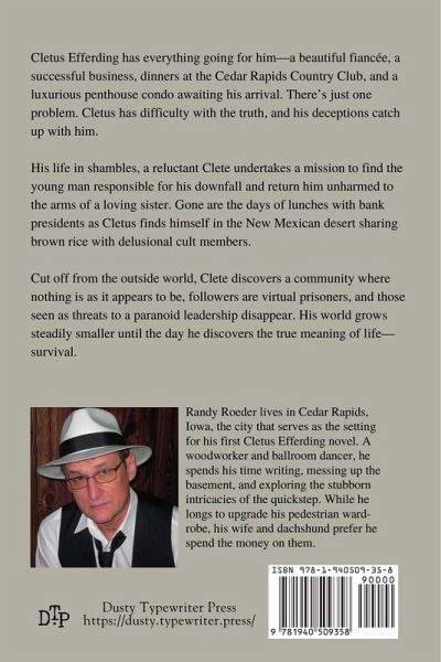 "There's nothing like the collapse of your every claim to human decency to take the edge off the day." Cletus Efferding has everything going for him-a beautiful fiancée, a successful business, dinners at the Cedar Rapids Country Club, and a luxurious penthouse condo awaiting his arrival, There's just one problem. Cletus has difficulties with the truth and his deceptions catch up with him. With his life in shambles, a reluctant Cletus undertakes a mission to rescue the young man responsible for his downfall and return him unharmed to the arms of a loving sister. Gone are the days of lunches with bank presidents as Cletus finds himself in the New Mexican desert sharing brown rice with delusional cult members. Cut off from the outside world, Clete discovers a community where nothing is as it appears to be, followers are virtual prisoners, and those seen as threats to a paranoid leadership disappear. His world grows steadily smaller until he discovers the true meaning of life-survival.