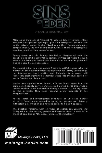 A routine missing person's case sends Sam Jenkins and John Gallagher into the world of industrial pollution, environmental activists and profuse ambiguities. Former government agents, the man's parents and other material witnesses seem to be withholding information and nothing is as it appears. Can the young man's beautiful friend provide them with enough information to locate her lover before it's too late? Time is running out as the detectives attempt to locate the lost man on their "peaceful side of the Smokies."