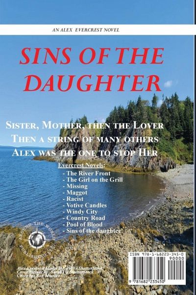 The River Front: Introduces Alex as Cincinnati's first Black female detective. The Girl on the Grill: Deals with the murder of a young woman by a local drug distributor. Missing: Alex solves a fifteen-year-old abduction cold case Maggot: Alex's work with the DEA has a Mexican Drug cartel boss attacking her. Racist: Alex is targeted to be killed by a racist. Votive Candles: A local priest and his licentious behavior give Alex a new perspective of crime. Windy City Alex is hired to root out the bad members of the Chicago Police. Country Road: An organization that is killing young women is eliminated by Alex and team. Pool of Blood: On vacation Alex is asked to help a case involving a serial killer. Sins of the Daughter: A demented person kills individuals and buries them along the Canadian Border. These are the cases that Cincinnati's first Black female detective, Alex Evercrest, with her dedicated team solve. Her extraordinary skills both physically and with her weapon and the strong support of her detective team members is the "force" that is her armor. Her unwavering belief that she should, "treat others the way she wishes to be treated," guides her. Sins of the Daughter: One moment Zelda was getting pummeled by her sister. She pushed then she was looking down at her a blood gushed from Ada's head. She looked around to see if Ada's boyfriend with whom she had been making out was in sight, but the coward was gone. Ada's car was the only one in the lot. Zelda's wish of not having a sister had come true. She pulled her to a ravine and sent her to the bottom and then caved in stone from the edge until she was sure she had a deep cover. She knew she had taken the branch in the road of her life that was the way she wanted to go. She focused on getting out of the University and getting a job. Sometime later her mother took a step too far in accusing her of doing in her sister and Zelda took her mother to Aida's grave and had her join her. Zelda got the perfect job and celebrated by eliminating the lover that had run from both her and Aida. He was but the first of many. She became known as getting the job done and was soon working on her own doing inspections along the Canadian border with the US. She had it made and was working her way westward along the border. Then the bodies were discovered. A US detective was hired to look into the discovered bodies and her whole life began to come unraveled. Who was this detective? How was it that she was able to figure out the string of plantings that had been so expertly carried out. Then when she thought she had set up the perfect way to end it all. It was she who had been wounded. It was she who had lost all her savings. It was she who was on the run. She had a last chance, and she took it but once again she was on the run. She lay on the ground looking up at the Black Cincinnati detective that had somehow exposed her and had ended her ambition of planting a body at every Canada to US crossing point. She would forever wonder how she had been out done.