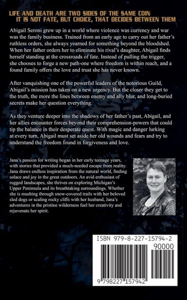 Abigail Seroni grew up in a world where violence was currency and war was the family business. Trained from an early age to carry out her father's ruthless orders, she always yearned for something beyond the bloodshed. When her father orders her to eliminate his rival's daughter, Abigail finds herself standing at the crossroads of fate. Instead of pulling the trigger, she chooses to forge a new path-one where freedom is within reach, and a found family offers the love and trust she has never known. After vanquishing one of the powerful leaders of the notorious Guild, Abigail's mission has taken on a new urgency. But the closer they get to the truth, the more the lines between enemy and ally blur, and long-buried secrets make her question everything. As they venture deeper into the shadows of her father's past, Abigail, and her allies encounter forces beyond their comprehension-powers that could tip the balance in their desperate quest. With magic and danger lurking at every turn, Abigail must set aside her old wounds and fears and try to understand the freedom found in forgiveness and love.