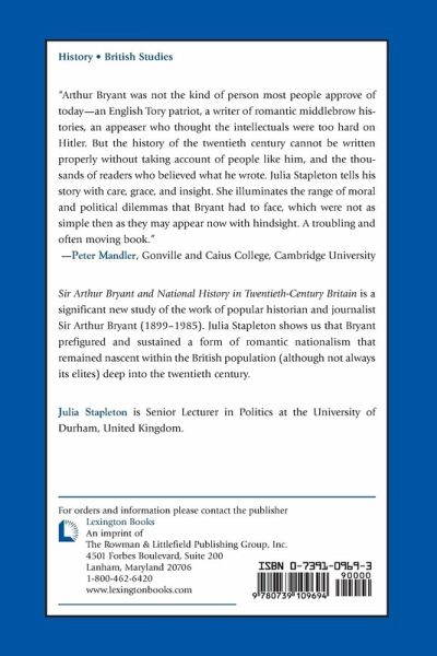 Sir Arthur Bryant and National History in Twentieth-Century Britain is a significant new study of the work of the popular historian and journalist Sir Arthur Bryant (1899-1985). Since his death, scholarly interest in Bryant has focused on his Nazi sympathies in the late 1930s. Julia Stapleton broadens our understanding of the man and the writer. Stapleton illuminates Bryant's romantic ideal of his nation. She explores the historian's success in writing for a broad middlebrow audience, aided by his firsthand experience of two world wars; and she traces the decline of Bryant's authority beginning in the 1960s as the discipline of history diversified and new ties were forged between professional historians and popular readerships. Stapleton suggests that Bryant prefigured and sustained a form of nationalism that remained nascent within the British population (though not always its elites) deep into the twentieth century, as the Falklands episode and the recent resurgence of English national identity well illustrate. Twenty years after his death, when history has scaled new heights of popularity, a study of the historian whose work made perhaps the largest public impact in twentieth-century Britain could not be more timely.