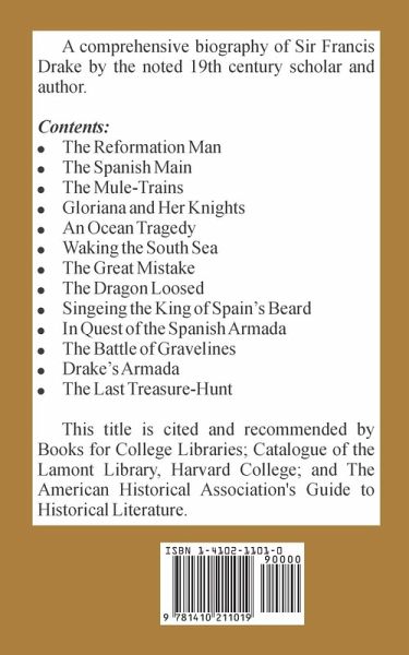 A comprehensive biography of Sir Francis Drake by the noted 19th century scholar and author. Contents: The Reformation Man The Spanish Main The Mule-Trains Gloriana and Her Knights An Ocean Tragedy Waking the South Sea The Great Mistake The Dragon Loosed Singeing the King of Spain's Beard In Quest of the Spanish Armada The Battle of Gravelines Drake's Armada The Last Treasure-Hunt This title is cited and recommended by Books for College Libraries; Catalogue of the Lamont Library, Harvard College; and The American Historical Association's Guide to Historical Literature.