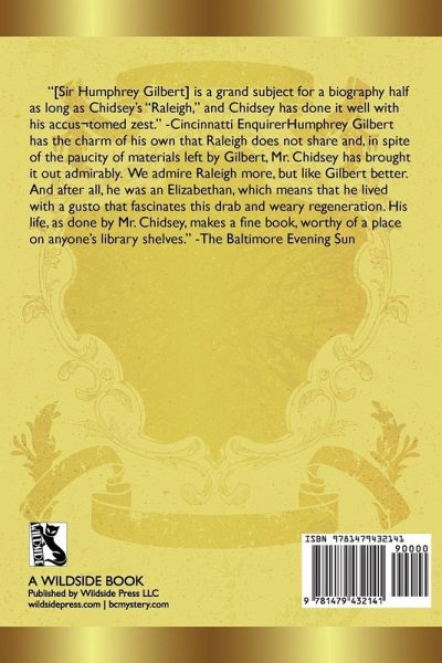 "[Sir Humphrey Gilbert] is a grand subject for a biography half as long as Chidsey's "Raleigh," and Chidsey has done it well with his accus¬tomed zest." -Cincinnatti Enquirer Humphrey Gilbert has the charm of his own that Raleigh does not share and, in spite of the paucity of materials left by Gilbert, Mr. Chidsey has brought it out admirably. We admire Raleigh more, but like Gilbert better. And after all, he was an Elizabethan, which means that he lived with a gusto that fascinates this drab and weary regeneration. His life, as done by Mr. Chidsey, makes a fine book, worthy of a place on anyone's library shelves." -The Baltimore Evening Sun