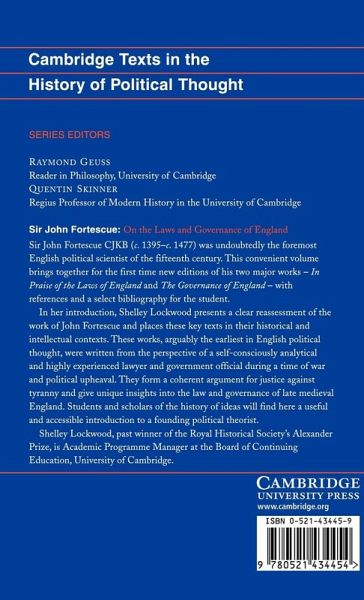 Sir John Fortescue was arguably the founder of English political science. This convenient volume brings together for the first time new editions of his two major works - In Praise of the Laws of England and The Governance of England - with references and suggestions for further reading for the student.