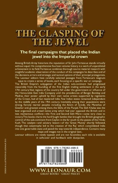 The final campaigns that placed the Indian jewel into the Imperial crown Among British Army historians the reputation of Sir John Fortescue stands virtually without equal. His comprehensive fourteen volume history is a work of unparalleled achievement in its field. Fortescue combines thorough source material research with insightful academic observation of the conduct of the campaigns he describes and of the decisions, errors and strategic and tactical options of their principal protagonists. The Leonaur editors have carefully selected passages from Fortescue's magnum opus to create a series of books, each focusing on a specific war or campaign. The British Empire's subjugation of the Indian sub-continent had progressed inexorably from the founding of the first English trading settlement in the early 17th century. Vast regions of the country fell under the government or influence of the Honourable East India Company until the presidencies of Bengal, Bombay and Madras, their power upheld by their own native armies supported by regiments of the Crown, had all but mastered India. Few Indian states remained independent by the middle years of the 19th century. Inevitably, among their populations were strong, fiercely martial peoples including the Amirs of Scinde, the Marathas of Gwalior and, greatest among them, the Sikhs of the Punjab. The Sikh Khalsa was the best organised and armed native army which had ever opposed the British and in two momentous conflicts-the First and Second Sikh Wars-came very close to victory. This books charts the hard fought battles that brought the British geographic control of the sub-continent from Ceylon in the far south to the passes of the Hindu Kush. The catalyst-and salutary lesson-of the 'Great Mutiny' shortly followed, though that catastrophe led to the creation of 'the Raj' which consolidated India into one governable state and paved the way towards independence. Contains many maps and images not in the original text. Leonaur editions are newly typeset and are not facsimiles; each title is available in softcover and hardback with dustjacket.