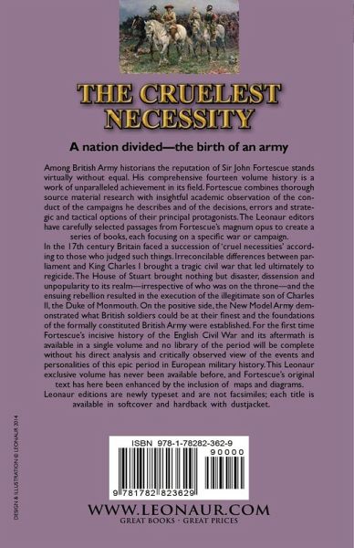 A nation divided-the birth of an army Among British Army historians the reputation of Sir John Fortescue stands virtually without equal. His comprehensive fourteen volume history is a work of unparalleled achievement in its field. Fortescue combines thorough source material research with insightful academic observation of the conduct of the campaigns he describes and of the decisions, errors and strategic and tactical options of their principal protagonists. The Leonaur editors have carefully selected passages from Fortescue's magnum opus to create a series of books, each focusing on a specific war or campaign. In the 17th century Britain faced a succession of 'cruel necessities' according to those who judged such things. Irreconcilable differences between parliament and King Charles I brought a tragic civil war that led ultimately to regicide. The House of Stuart brought nothing but disaster, dissension and unpopularity to its realm-irrespective of who was on the throne-and the ensuing rebellion resulted in the execution of the illegitimate son of Charles II, the Duke of Monmouth. On the positive side, the New Model Army demonstrated what British soldiers could be at their finest and the foundations of the formally constituted British Army were established. For the first time Fortescue's incisive history of the English Civil War and its aftermath is available in a single volume and no library of the period will be complete without his direct analysis and critically observed view of the events and personalities of this epic period in European military history. This Leonaur exclusive volume has never been available before, and Fortescue's original text has here been enhanced by the inclusion of maps and diagrams. Leonaur editions are newly typeset and are not facsimiles; each title is available in softcover and hardback with dustjacket.