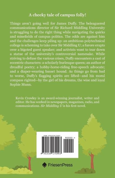 A cheeky tale of campus folly! Things aren't going well for James Duffy. The beleaguered communications director of Sir Richard Middling University is struggling to do the right thing while navigating the quirks and minefields of campus politics. The odds are against him and the challenges keep piling up: an ambitious polytechnical college is scheming to take over Sir Middling U; a furore erupts over a bigoted guest speaker; and activists want to tear down a statue of the university's controversial namesake. While striving to defuse the various crises, Duffy encounters a cast of eccentric characters: a scholarly burlesque queen; an author of dreadful poetry; a hobby-horse-riding free-speech advocate; and a diaper-wearing basset hound. As things go from bad to worse, Duffy's flagging spirits are lifted-and his moral compass righted-by the girl of his dreams, the wise and loyal Sophie Munn.