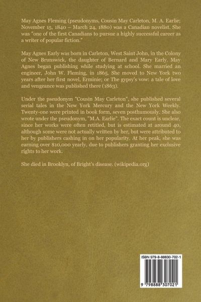 Sir Noel Thetford, a young man of only seven-and-twenty in his prime of life, lays dying, tragically thrown from a horse. Married a mere five months to the beautiful Lady Ada Thetford, he calls her to his deathbed and sends everyone else away. "I have been a villain, Ada," he admits, "the greatest villain on earth to you." For the next few hours, Lady Thetford listens to her husband's confession. Never once does she falter, never does she stir or speak; but her face grows whiter than her dress, and her great dark eyes dilate with a horror too intense for words. And what is this great secret that gives one chills just to think about? You'll have to read the book to find out, but I promise: If you love melodrama and unexpected twists and turns, it'll be a fun ride. (L. Braun) About the author: May Agnes Fleming (pseudonyms, Cousin May Carleton, M. A. Earlie; November 15, 1840 - March 24, 1880) was a Canadian novelist. She was "one of the first Canadians to pursue a highly successful career as a writer of popular fiction." May Agnes Early was born in Carleton, West Saint John, in the Colony of New Brunswick, the daughter of Bernard and Mary Early. May Agnes began publishing while studying at school. She married an engineer, John W. Fleming, in 1865. She moved to New York two years after her first novel, Erminie; or The gypsy's vow: a tale of love and vengeance was published there (1863). Under the pseudonym "Cousin May Carleton", she published several serial tales in the New York Mercury and the New York Weekly. Twenty-one were printed in book form, seven posthumously. She also wrote under the pseudonym, "M.A. Earlie". The exact count is unclear, since her works were often retitled, but is estimated at around 40, although some were not actually written by her, but were attributed to her by publishers cashing in on her popularity. At her peak, she was earning over $10,000 yearly, due to publishers granting her exclusive rights to her work. She died in Brooklyn, of Bright's disease. (wikipedia.org)