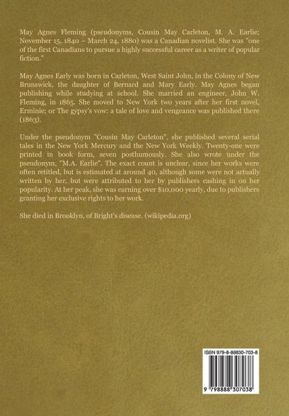 Sir Noel Thetford, a young man of only seven-and-twenty in his prime of life, lays dying, tragically thrown from a horse. Married a mere five months to the beautiful Lady Ada Thetford, he calls her to his deathbed and sends everyone else away. "I have been a villain, Ada," he admits, "the greatest villain on earth to you." For the next few hours, Lady Thetford listens to her husband's confession. Never once does she falter, never does she stir or speak; but her face grows whiter than her dress, and her great dark eyes dilate with a horror too intense for words. And what is this great secret that gives one chills just to think about? You'll have to read the book to find out, but I promise: If you love melodrama and unexpected twists and turns, it'll be a fun ride. (L. Braun) About the author: May Agnes Fleming (pseudonyms, Cousin May Carleton, M. A. Earlie; November 15, 1840 - March 24, 1880) was a Canadian novelist. She was "one of the first Canadians to pursue a highly successful career as a writer of popular fiction." May Agnes Early was born in Carleton, West Saint John, in the Colony of New Brunswick, the daughter of Bernard and Mary Early. May Agnes began publishing while studying at school. She married an engineer, John W. Fleming, in 1865. She moved to New York two years after her first novel, Erminie; or The gypsy's vow: a tale of love and vengeance was published there (1863). Under the pseudonym "Cousin May Carleton", she published several serial tales in the New York Mercury and the New York Weekly. Twenty-one were printed in book form, seven posthumously. She also wrote under the pseudonym, "M.A. Earlie". The exact count is unclear, since her works were often retitled, but is estimated at around 40, although some were not actually written by her, but were attributed to her by publishers cashing in on her popularity. At her peak, she was earning over $10,000 yearly, due to publishers granting her exclusive rights to her work. She died in Brooklyn, of Bright's disease. (wikipedia.org)