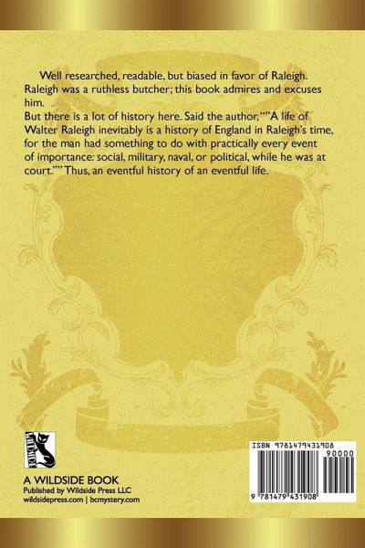 Sir Walter Raleigh is a well-researched, highly readable biography of one of British history's pivotal figures. Said the author: "A life of Walter Raleigh inevitably is a history of England in Raleigh's time, for the man had something to do with practically every event of importance: social, military, naval, or political, while he was at court." Thus, an eventful history of an eventful life.