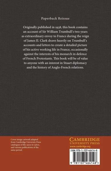 Originally published in 1938, this book contains an account of Sir William Trumbull's two years as extraordinary envoy to France during the reign of James II. Clark draws heavily on Trumbull's accounts and letters to create a detailed picture of his active working life in France, occasionally against the interests of his monarch in defence of French Protestants. This book will be of value to anyone with an interest in Stuart diplomacy and the history of Anglo-French relations.