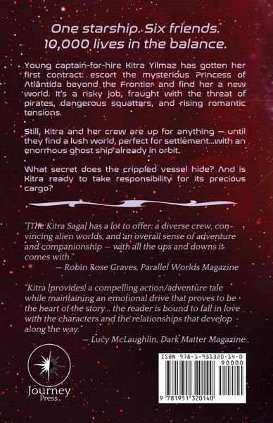 One starship, six friends, 10,000 lives in the balance Young captain-for-hire Kitra Yilmaz has gotten her first contract: escort the mysterious Princess of Atlántida beyond the Frontier and find her a new world. It's a risky job, fraught with the threat of pirates, dangerous squatters, and rising romantic tensions. Still, Kitra and her crew are up for anything - until they find a lush world, perfect for settlement...with an enormous ghost ship already in orbit. What secret does the crippled vessel hide? And is Kitra ready to take responsibility for its precious cargo? Praise for the Kitra Saga: "[The Kitra Saga] has a lot to offer: a diverse crew, convincing alien worlds, and an overall sense of adventure and companionship - with all the ups and downs it comes with." - Robin Rose Graves, Parallel Worlds Magazine "Kitra is successful in providing a compelling action/adventure tale while maintaining an emotional drive that proves to be the heart of the story... the reader is bound to fall in love with the characters and the relationships that develop along the way." - Dark Matter Magazine