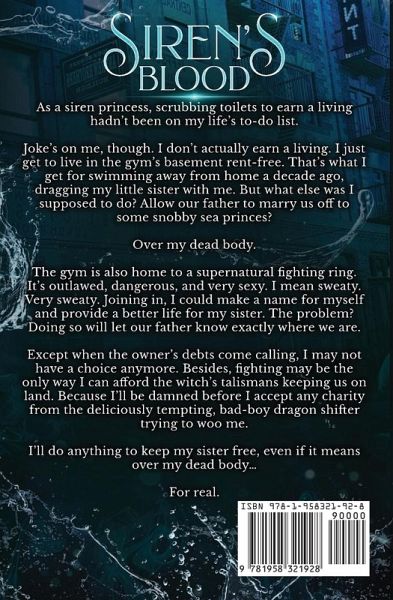 A runaway siren princess. A billionaire bad-boy dragon shifter. A supernatural fighting ring that will cost one of them everything... As a siren princess, scrubbing toilets to earn a living hadn't been on my life's to-do list.Joke's on me, though. I don't actually earn a living. I just get to live in the gym's basement rent-free. That's what I get for swimming away from home a decade ago, dragging my little sister with me. But what else was I supposed to do? Allow our father to marry us off to some snobby sea princes? Over my dead body. The gym is also home to a supernatural fighting ring. It's outlawed, dangerous, and very sexy. I mean sweaty. Very sweaty. Joining in, I could make a name for myself and provide a better life for my sister. But doing so will let our father know exactly where we are. Except when the owner's debts come calling, I may not have a choice anymore. Fighting may be the only way I can afford to keep us safe. Because I'll be damned before I accept any charity from the deliciously tempting, bad boy dragon shifter trying to woo me. I'll do anything to keep my sister free, even if it means over my dead body... For real.