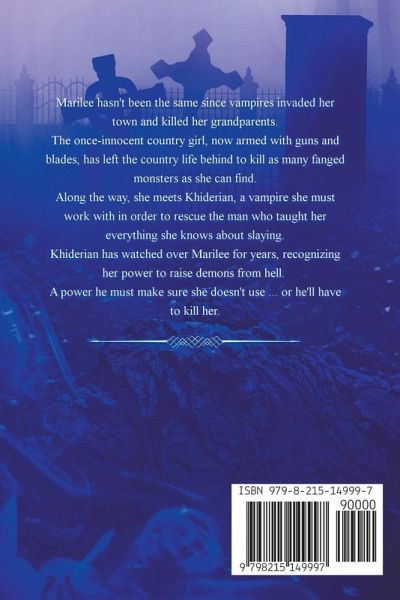 Marilee hasn't been the same since vampires invaded her town and killed her grandparents. The once-innocent country girl, now armed with guns and blades, has left the country life behind to kill as many fanged monsters as she can find. Along the way, she meets Khiderian, a vampire she must work with in order to rescue the man who taught her everything she knows about slaying. Khiderian has watched over Marilee for years, recognizing her power to raise demons from hell. A power he must make sure she doesn't use ... or he'll have to kill her.