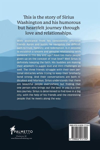 This is the story of Sirius Washington and his humorous but heartfelt journey through love and relationships. With assistance from his consistently offensive friends Aaron and Justin, he navigates the difficult path to trust, honesty, and redemption. Is it possible to establish a sincere and genuine relationship with someone in this day and age? Have too many people given up on the concept of true love? Well Sirius is definitely keeping the faith. His buddies are making their attempts to juggle love and life's challenges as well. The three friends struggle with their own personal obstacles while trying to keep their brotherly bond strong. And their conversations are both ridiculous and hilarious. Sirius understands that there are beautiful people everywhere but finding that one person who brings out the best in you is a tireless journey. Sirius is determined to find love in a big city, with the help of his friends and the interesting people that he meets along the way.