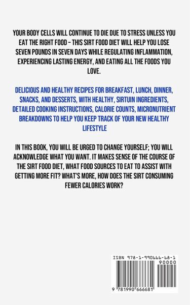 Your body cells will continue to die due to stress unless you eat the right food - this Sirt food diet will help you lose seven pounds in seven days while regulating inflammation, experiencing lasting energy, and eating all the foods you love. Delicious and healthy recipes for breakfast, lunch, dinner, snacks, and desserts, with healthy, sirtuin ingredients, detailed cooking instructions, calorie counts, micronutrient breakdowns to help you keep track of your new healthy lifestyle In this book, you will be urged to change yourself; you will acknowledge what you want. It makes sense of the course of the Sirt food diet, what food sources to eat to assist with getting more fit? What's more, how does the Sirt consuming fewer calories work?