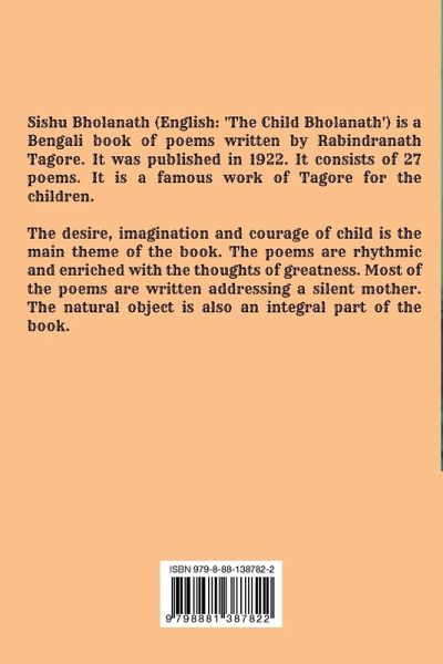 Sishu Bholanath (English: 'The Child Bholanath') is a Bengali book of poems written by Rabindranath Tagore. It was published in 1922. It consists of 27 poems. It is a famous work of Tagore for the children. The desire, imagination and courage of child is the main theme of the book. The poems are rhythmic and enriched with the thoughts of greatness. Most of the poems are written addressing a silent mother. The natural object is also an integral part of the book.
