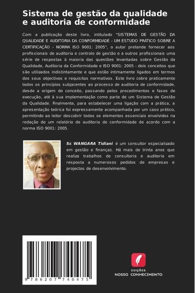 Com a publicação deste livro, intitulado "SISTEMAS DE GESTÃO DA QUALIDADE E AUDITORIA DA CONFORMIDADE - UM ESTUDO PRÁTICO SOBRE A CERTIFICAÇÃO - NORMA ISO 9001: 2005", o autor pretende fornecer aos profissionais de auditoria e controlo de gestão e a outros profissionais uma série de respostas à maioria das questões levantadas sobre Gestão da Qualidade, Auditoria da Conformidade e ISO 9001: 2005 - dois conceitos que são utilizados indistintamente e que estão intimamente ligados em termos dos seus objectivos e requisitos normativos. Este livro cobre praticamente todos os princípios subjacentes ao processo de auditoria de conformidade, desde a origem do conceito, passando pelos procedimentos e fases de execução, até à sua implementação como parte de um Sistema de Gestão da Qualidade. Finalmente, para estabelecer uma ligação com a prática, a apresentação teórica foi expressamente acompanhada por um caso prático, permitindo ao leitor descobrir todos os elementos essenciais envolvidos na redação de um relatório de auditoria de conformidade de acordo com a norma ISO 9001: 2005.