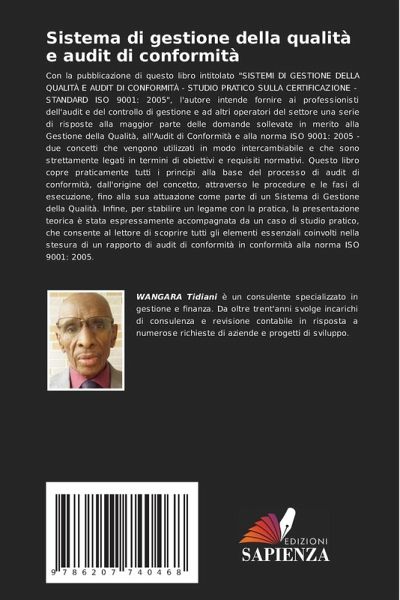 Con la pubblicazione di questo libro intitolato "SISTEMI DI GESTIONE DELLA QUALITÀ E AUDIT DI CONFORMITÀ - STUDIO PRATICO SULLA CERTIFICAZIONE - STANDARD ISO 9001: 2005", l'autore intende fornire ai professionisti dell'audit e del controllo di gestione e ad altri operatori del settore una serie di risposte alla maggior parte delle domande sollevate in merito alla Gestione della Qualità, all'Audit di Conformità e alla norma ISO 9001: 2005 - due concetti che vengono utilizzati in modo intercambiabile e che sono strettamente legati in termini di obiettivi e requisiti normativi. Questo libro copre praticamente tutti i principi alla base del processo di audit di conformità, dall'origine del concetto, attraverso le procedure e le fasi di esecuzione, fino alla sua attuazione come parte di un Sistema di Gestione della Qualità. Infine, per stabilire un legame con la pratica, la presentazione teorica è stata espressamente accompagnata da un caso di studio pratico, che consente al lettore di scoprire tutti gli elementi essenziali coinvolti nella stesura di un rapporto di audit di conformità in conformità alla norma ISO 9001: 2005.