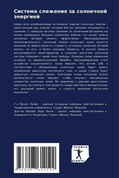 Sredi wseh wozobnowlqemyh istochnikow änergii solnechnaq änergiq - edinstwennyj wid änergii, kotoryj bystro zawoewal populqrnost' i znachenie. S pomosch'ü sistemy slezheniq za solnechnymi batareqmi my mozhem proizwodit' bol'shoe kolichestwo änergii, chto delaet rabotu solnechnyh batarej namnogo äffektiwnee. Perpendikulqrnaq proporcional'nost' solnechnoj paneli solnechnym lucham qwlqetsq prichinoj ee äffektiwnosti. Stoimost' ustanowki solnechnyh batarej wysoka, no est' i bolee deshewye warianty. V dannom proekte rassmatriwaetsq proektirowanie i sozdanie prototipa solnechnoj sistemy slezheniq s odnoj os'ü swobody. Osnownaq shema uprawleniq osnowana na mikrokontrollere NodeMcu. Programmirowanie ätogo ustrojstwa osuschestwlqetsq takim obrazom, chto datchik LDR, w sootwetstwii s obnaruzheniem solnechnyh luchej, budet dawat' naprawlenie dwigatelü postoqnnogo toka, w kakuü storonu budet wraschat'sq solnechnaq panel'. Blagodarq ätomu solnechnaq panel' raspolagaetsq takim obrazom, chtoby poluchit' maximal'noe kolichestwo solnechnyh luchej. Po srawneniü s drugimi dwigatelqmi, dwigatel' postoqnnogo toka qwlqetsq samym prostym i obhoditel'nym, ego krutqschij moment wysok, a skorost' wrascheniq dostatochno medlennaq.