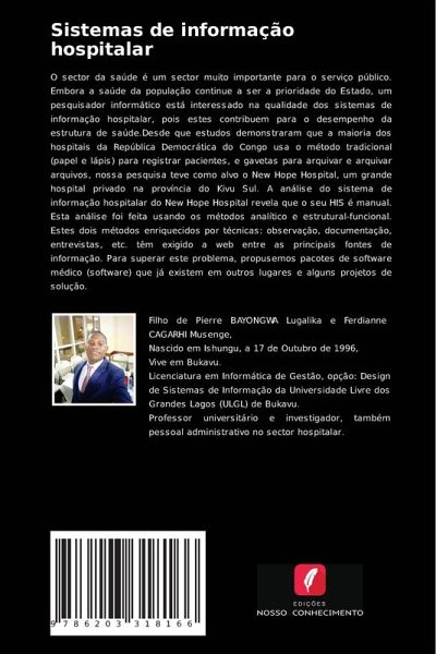 O sector da saúde é um sector muito importante para o serviço público. Embora a saúde da população continue a ser a prioridade do Estado, um pesquisador informático está interessado na qualidade dos sistemas de informação hospitalar, pois estes contribuem para o desempenho da estrutura de saúde.Desde que estudos demonstraram que a maioria dos hospitais da República Democrática do Congo usa o método tradicional (papel e lápis) para registrar pacientes, e gavetas para arquivar e arquivar arquivos, nossa pesquisa teve como alvo o New Hope Hospital, um grande hospital privado na província do Kivu Sul. A análise do sistema de informação hospitalar do New Hope Hospital revela que o seu HIS é manual. Esta análise foi feita usando os métodos analítico e estrutural-funcional. Estes dois métodos enriquecidos por técnicas: observação, documentação, entrevistas, etc. têm exigido a web entre as principais fontes de informação. Para superar este problema, propusemos pacotes de software médico (software) que já existem em outros lugares e alguns projetos de solução.
