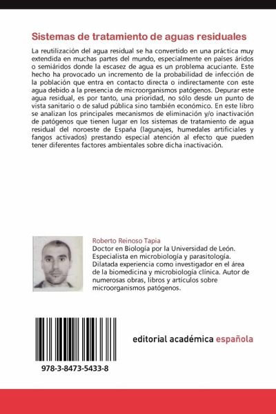 La reutilización del agua residual se ha convertido en una práctica muy extendida en muchas partes del mundo, especialmente en países áridos o semiáridos donde la escasez de agua es un problema acuciante. Este hecho ha provocado un incremento de la probabilidad de infección de la población que entra en contacto directa o indirectamente con este agua debido a la presencia de microorganismos patógenos. Depurar este agua residual, es por tanto, una prioridad, no sólo desde un punto de vista sanitario o de salud pública sino también económico. En este libro se analizan los principales mecanismos de eliminación y/o inactivación de patógenos que tienen lugar en los sistemas de tratamiento de agua residual del noroeste de España (lagunajes, humedales artificiales y fangos activados) prestando especial atención al efecto que pueden tener diferentes factores ambientales sobre dicha inactivación.