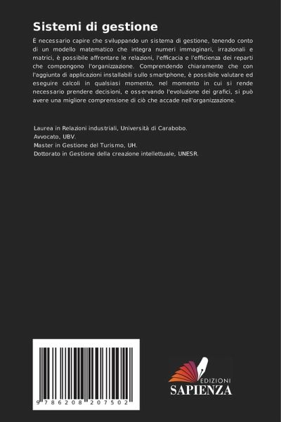 È necessario capire che sviluppando un sistema di gestione, tenendo conto di un modello matematico che integra numeri immaginari, irrazionali e matrici, è possibile affrontare le relazioni, l'efficacia e l'efficienza dei reparti che compongono l'organizzazione. Comprendendo chiaramente che con l'aggiunta di applicazioni installabili sullo smartphone, è possibile valutare ed eseguire calcoli in qualsiasi momento, nel momento in cui si rende necessario prendere decisioni, e osservando l'evoluzione dei grafici, si può avere una migliore comprensione di ciò che accade nell'organizzazione.