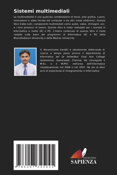La multimedialità è una qualsiasi combinazione di testo, arte grafica, suono, animazione e video fornita dal computer o da altri mezzi elettronici. Questo libro tratta tutti i componenti multimediali come audio, video, immagini, ecc. e i loro processi di lavoro. Questo libro è stato realizzato per i laureati in Informatica a livello UG e PG. L'intero contenuto di questo libro è stato redatto sulla base dei programmi di Informatica UG e PG della Bharathidasan University e della Madras University.