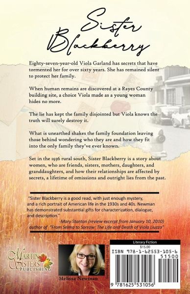 Eighty-seven-year-old Viola Garland has secrets that have tormented her for over sixty years. She has remained silent to protect her family. When human remains are discovered at a Rayes County building site, a choice Viola made as a young woman hides no more. The lie has kept the family disjointed but Viola knows the truth will surely destroy it. What is unearthed shakes the family foundation leaving those behind wondering who they are and how they fit into the only family they've ever known. Set in the 1936 rural south, Sister Blackberry is a story about women, who are friends, sisters, mothers, daughters, and granddaughters, and how their relationships are affected by secrets, a lifetime of omissions and outright lies from the past.