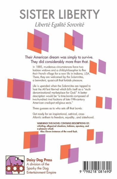 Their American Dream was simply to survive. They managed considerably more than that. With its cast of obedient romantics, mystical nutbags, and adorable cynics, Sister Liberty is the rollicking, thunderous introductory volume to The Stables Family Chronicles. In 1885, murderous circumstances force two lesbian widows and a child-philosopher to flee their French village for a new life in Indiana, USA. There, they are welcomed by the Solemnites, a benvolent, quasi-cult that forbids pleasure. Life is upended when the Solemnites are tapped to host the All-Tent Revival which bills itself as a "multi-denominational marketplace for God." A better description would be "a time-bomb composed of two-hundred rival factions of late-19th-century American crack-pot religious sects." Three guesses as to who sets off that bomb. Get ready for an inspirational, satirical, cross-Atlantic anthem to freedom, equality...and sisterhood. WARNING! THIS NOVEL CONTAINS DESCRIPTIONS OF: whistling, allegorical situations, lesbians, apostasy, and a pleasure wheel. Also: Eleven instances of the word fuck.