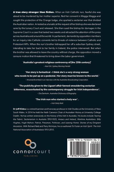 A true story stranger than fiction. When an Irish Catholic nun, fearful she was about to be murdered by her mother superior, fled her convent in Wagga Wagga and sought the protection of the Orange lodge, she sparked a sectarian war that divided the Australian nation. Arrested as a lunatic at the request of her bishop she was declared sane by the Lunacy Court and released. She then sued the bishop for damages in the Supreme Court in a case that lasted two weeks and attracted the attention of the press across Australia and around the world. In parliament, demands by opposition members for an inquiry into Catholic convents led to threats of violence between Catholic and Protestant MPs. When the nun's brother kidnapped her off a suburban Sydney street, intending to take her back to her family in Ireland, the police intervened. But when the brother was allowed to leave the country without charge, the opposition moved a censure motion that threatened to bring down the Labor government. 'Australia's greatest religious controversy of [the 20th century]' - Alan Gill, Sydney Morning Herald 'Her story is fantastical - I think she's a very strong woman who needs to be put up on a pedestal. Her story must be known to the world.' - Amanda Bromfield in an interview with the Australian Broadcasting Corporation. 'The publicity given to the Liguori affair fanned smouldering sectarian bitterness, exacerbated by the contemporary struggle for Irish independence'. - Zita Denholm, Australian Dictionary of Biography. 'The Irish nun who started a holy war'. - Irish Daily Mail. Dr Jeff Kildea is a retired barrister and honorary professor in Irish Studies at the University of New South Wales. In 2014 he held the Keith Cameron Chair of Australian History at University College Dublin. He has written extensively on the history of the Irish in Australia. His books include Tearing the Fabric: Sectarianism in Australia 1910-1925, Anzacs and Ireland, Wartime Australians: Billy Hughes, Hugh Mahon: Patriot, Pressman, Politician, and Leaving Home: Stories of my Emigrant Ancestors. With Richard Reid and Perry McIntyre, he co-authored To Foster an Irish Spirit: The Irish National Association of Australasia 1915-2015.