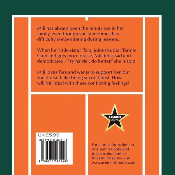 Mili has always been the tennis ace in her family, even though she sometimes has difficulty concentrating during lessons. When her little sister, Tara, joins the Star Tennis Club and gets more praise, Mili feels sad and demotivated. "Try harder, do better," she is told. Mili loves Tara and wants to support her, but she doesn't like being second best. How will Mili deal with these conflicting feelings? Ace Tennis Books are set in the rewarding and competitive world of junior tennis. It's not all about winning - sportsmanship, ambition and endeavour come first. Young readers can experience the excitement of sport through these heartwarming stories featuring adorable characters. Prior knowledge of the sport is not essential. Full colour illustrations throughout. Sister Rivalry is perfect for parents to read with their children or for children to read independently. Full colour illustrations throughout. Includes a glossary of tennis terms. Tennis is a sport that requires dedication, focus, fitness and mental strength. We want the sport to keep growing. We want to help it reach as many young people around the world as possible. These books will hopefully entertain, encourage a love of reading and above all, allow children into the fascinating world of tennis. Visit www.acetennisbooks.com or find us on Twitter, Instagram and Facebook @acetennisbooks