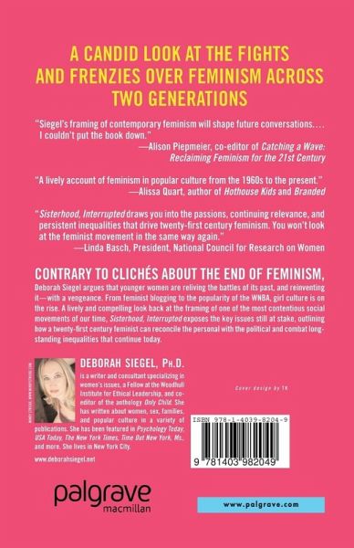 "My hope is that after reading this book, you will have a deeper sense of many of the stories that make feminist history and philosophy, and you will use them to continue to figure out what feminism means to you." - from the foreword by Jennifer Baumgardner"Siegel has her finger on the pulse of one of the main issues concerning women today: generational infighting around the unfinished business of feminism. It's an issue that concerns everyone whether or not they use the f-word." - Catherine Orenstein, author of Red Riding Hood Uncloaked'Sisterhood, Interrupted tells the history of conflicts within feminism without demonizing or blaming.Siegel conveys the excitement of feminism, then and now. She offersan informed and sympathetic perspective on the second wavethat will help younger readers understand what it was like to be part of a movement that planned to change the world.And her framing of contemporary feminism will shape future conversations. Her explanations of what's happening now - the significant trends and controversies within the movement - provide a clarity that's lacking in the work of many feminist authors, from any generation. I couldn't put the book down.' Alison Piepmeier, co-editor of Catching a Wave:Reclaiming Feminism for the 21st Century