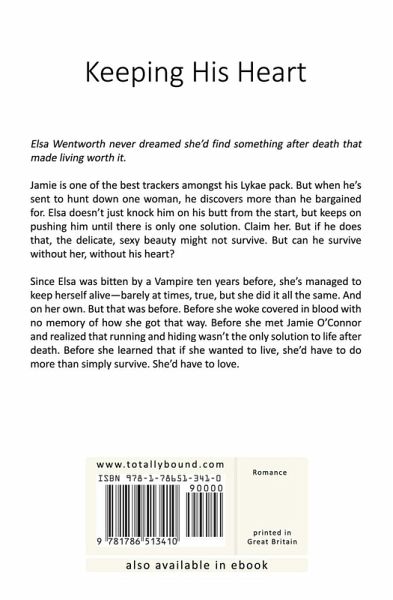 Elsa Wentworth never dreamed she'd find something after death that made living worth it. Jamie is one of the best trackers amongst his Lykae pack. But when he's sent to hunt down one woman, he discovers more than he bargained for. Elsa doesn't just knock him on his butt from the start, but keeps on pushing him until there is only one solution. Claim her. But if he does that, the delicate, sexy beauty might not survive. But can he survive without her, without his heart? Since Elsa was bitten by a Vampire ten years before, she's managed to keep herself alive-barely at times, true, but she did it…mehr
