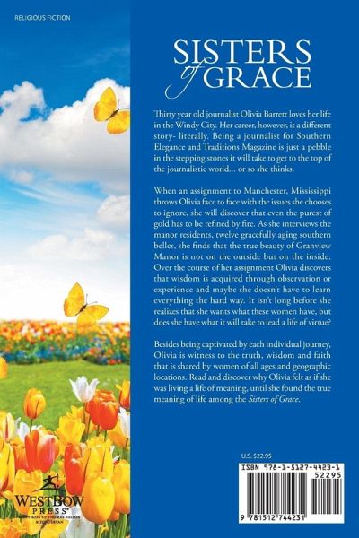 Thirty year old journalist Olivia Barrett loves her life in the Windy City. Her career, however, is a different story- literally. Being a journalist for Southern Elegance and Traditions Magazine is just a pebble in the stepping stones it will take to get to the top of the journalistic world... or so she thinks. When an assignment to Manchester, Mississippi throws Olivia face to face with the issues she chooses to ignore, she will discover that even the purest of gold has to be refined by fire. As she interviews the manor residents, twelve gracefully aging southern belles, she finds that the true beauty of Granview Manor is not on the outside but on the inside. Over the course of her assignment Olivia discovers that wisdom is acquired through observation or experience and maybe she doesn't have to learn everything the hard way. It isn't long before she realizes that she wants what these women have, but does she have what it will take to lead a life of virtue? Besides being captivated by each individual journey, Olivia is witness to the truth, wisdom and faith that is shared by women of all ages and geographic locations. Read and discover why Olivia felt as if she was living a life of meaning, until she found the true meaning of life among the Sisters of Grace.