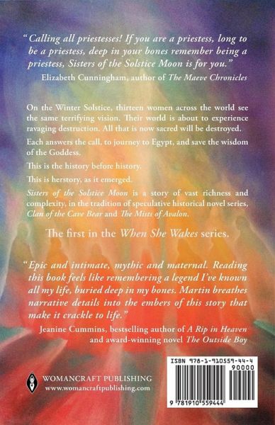 On the Winter Solstice, thirteen women across the world see the same terrifying vision. Their world is about to experience ravaging destruction. All that is now sacred will be destroyed. Each answers the call, to journey to Egypt, and save the wisdom of the Goddess: She who is Kali Ma from the jungles of Arya, Tiamet from the Roof of the World, Badh of the Cailleach from the land of Eiru, Awa from the Land of Yemaya, Uxua of Ix Chel from the Yucatan, Parasfahe from the Land of Inanna… all racing against time and history to bring us their story. This is the history before history. This is herstory, as it emerged. An imagining… or is it a remembering? of the end of matriarchy and the emergence of global patriarchy, this book brings alive long dead cultures from around the world and brings us closer to the lost wisdoms that we know in our bones. Sisters of the Solstice Moon is a story of vast richness and complexity, in the tradition of speculative historical novel series, Clan of the Cave Bear and The Mists of Avalon. Gina Martin creates a magical weaving of exotic landscapes, perennial wisdom, ritual and remembering. Journey into myth, and allow it to become real. The first in the When She Wakes series.