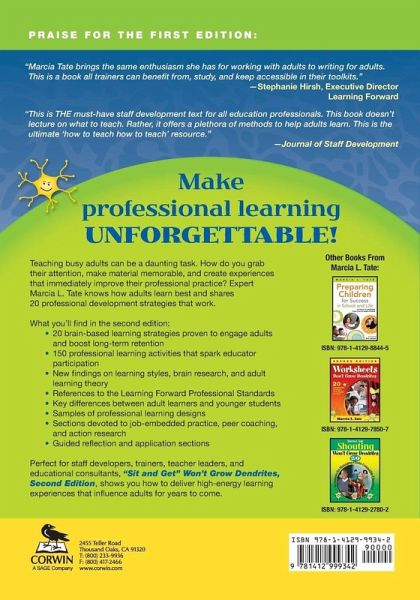 Make professional development unforgettable Teaching busy adults can be a daunting task. How do you grab their attention and make material memorable? Expert Marcia Tate knows how adults learn best and shares 20