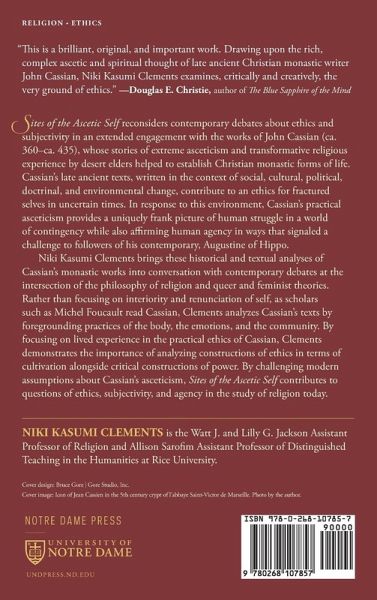Sites of the Ascetic Self reconsiders contemporary debates about ethics and subjectivity in an extended engagement with the works of John Cassian (ca. 360-ca. 435), whose stories of extreme asceticism and transformative religious experience by desert elders helped to establish Christian monastic forms of life. Cassian's late ancient texts, written in the context of social, cultural, political, doctrinal, and environmental change, contribute to an ethics for fractured selves in uncertain times. In response to this environment, Cassian's practical asceticism provides a uniquely frank picture of human struggle in a world of contingency while also affirming human agency in ways that signaled a challenge to followers of his contemporary, Augustine of Hippo. Niki Kasumi Clements brings these historical and textual analyses of Cassian's monastic works into conversation with contemporary debates at the intersection of the philosophy of religion and queer and feminist theories. Rather than focusing on interiority and renunciation of self, as scholars such as Michel Foucault read Cassian, Clements analyzes Cassian's texts by foregrounding practices of the body, the emotions, and the community. By focusing on lived experience in the practical ethics of Cassian, Clements demonstrates the importance of analyzing constructions of ethics in terms of cultivation alongside critical constructions of power. By challenging modern assumptions about Cassian's asceticism, Sites of the Ascetic Self contributes to questions of ethics, subjectivity, and agency in the study of religion today.
