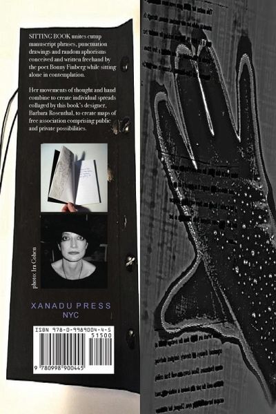 SITTING BOOK unites cutup manuscript phrases, punctuation drawings and random aphorisms conceived and written freehand by the poet Bonny Finberg while sitting alone in contemplation. Her movements of thought and hand combine to create individual spreads collaged by this book's designer, Barbara Rosenthal, to create maps of free association comprising public and private possibilities.