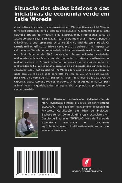 A agricultura é o sector mais importante em Woreda. Cerca de 60.171ha de terra são cultivados para a produção de culturas. O tamanho total da terra cultivada através de irrigação é de 8.586ha, o que representa cerca de 14,3% do total da terra cultivada. A terra potencialmente irrigável é pequena (13.800ha), o que representa cerca de 23% do total da terra arável. Os cereais (milho, teff, sorgo, trigo e cevada) são as culturas mais importantes cultivadas na Woreda. A produtividade média dos cereais (excluindo o milho) em East Estie é de 19,5 quintais/ha. Foram utilizadas variedades melhoradas e locais (sementes) de trigo e teff no Woreda e obteve-se um melhor rendimento. O rendimento do trigo para as variedades de sementes melhoradas (34,5 quintais/ha) é superior ao rendimento das variedades de sementes locais (23 quintais/ha). O Woreda tem uma elevada população de gado com um rácio de gado para HHs próximo de 3:1. O rácio de ovelhas para HHs é de cerca de 4:1. Existem também raças melhoradas de aves de capoeira, gado, cabras, ovelhas e burros. A escassez de alimentos para animais e a má qualidade das forragens são os principais problemas do sector pecuário.