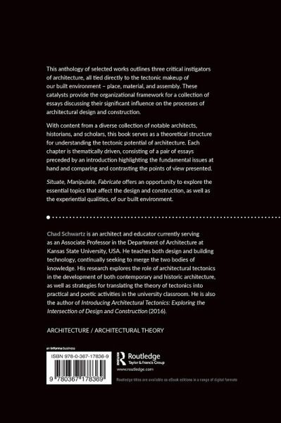 This anthology of selected works outlines three critical instigators of architecture, all tied directly to the tectonic makeup of our built environment - place, material, and assembly. It includes content from a diverse collection of notable architects, historians, and scholars.