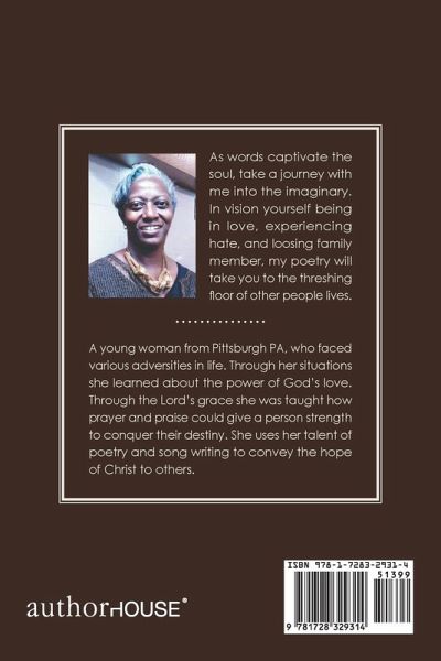 A young woman from Pittsburgh PA, who faced various adversities in life. Through her situations she learned about the power of God's love. Through the Lord's grace she was taught how prayer and praise could give a person strength to conquer their destiny. She uses her talent of poetry and song writing to convey the hope of Christ to others.
