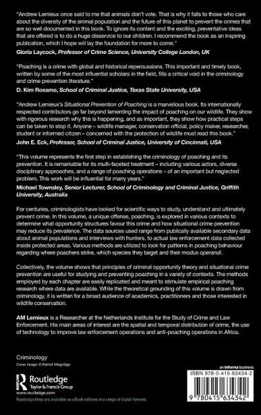 For centuries, criminologists have looked for scientific ways to study, understand, and ultimately prevent crime. In this volume, a unique offense, poaching, is explored in various contexts to determine what opportunity structures favor this crime and how situational crime prevention may reduce its prevalence. While the theoretical grounding of this volume is drawn from criminology, it is written for a broad audience of academics, practitioners and those interested in wildlife conservation.